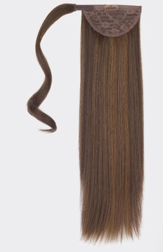 Aqua is the perfect piece to create a thick, natural hairstyle in no time! Aqua is a 14" straight wrap around ponytail. There is one pressure-sensitive clip to ensure a comfortable, secure fit. This ponytail makes it easy to conceal your natural hair by securing the velcro, then wrapping the additional strand of hair around it. Secure your style with the provided bobby pin. Aqua is made out of Ellen Wille premium high heat resistant synthetic fiber that makes maintenance easy and styling versatile! You are able to blow dry Aqua and style with any hot tool up to 130 degrees