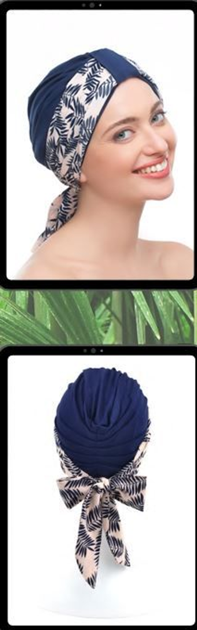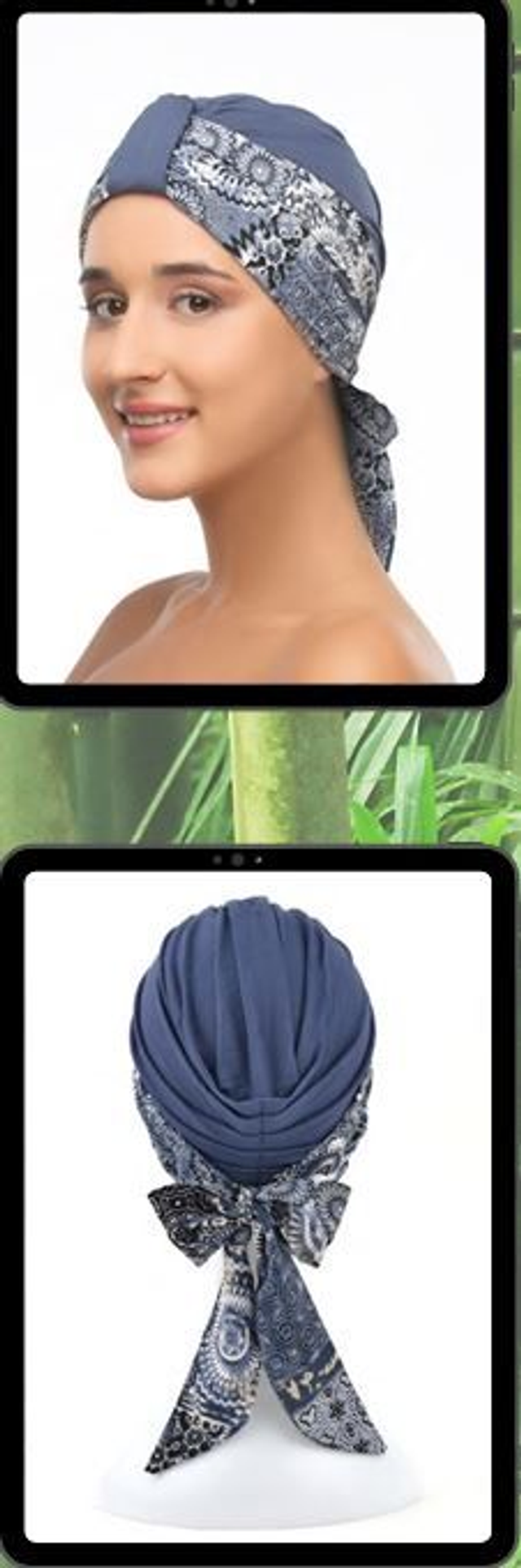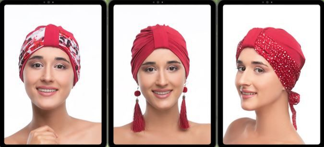 An exceptionally interesting turban, in addition to the basic hat, the set includes two patterned scarves matched in color, so that the entire set gives you the opportunity to freely choose your style every day. mix & match